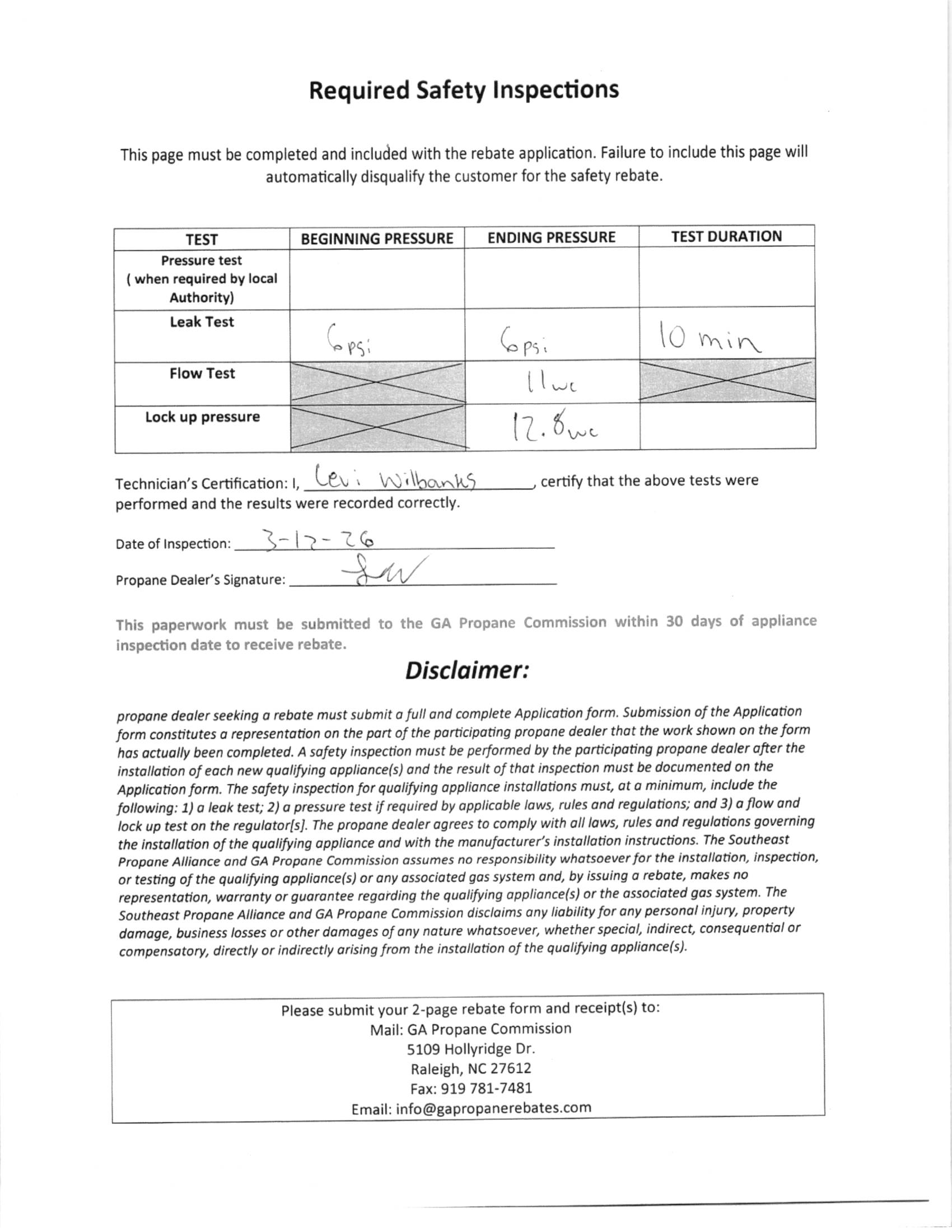 | Invoice # | Today's Date | Company Name | Company Contact | Company Phone | Company Email | Rebate Status | Safety Inspection Date | Purchase/Invoice Date | Safety Inspector’s Full Name | Type of Installation | Total | How many rebates would you like to claim? | Installation Type | Appliance Type | Brand | Model # | Model # | Serial Number | Installation Date | Upload Receipt | Appliance Type | Brand | Model # | Model # | Serial Number | Installation Date | Upload Receipt | Appliance Type | Brand | Model # | Model # | Serial Number | Installation Date | Upload Receipt | Total | Propane Company Name | Propane Marketer Name | Mailing Address | Email Address | Phone Number | Customer / Recipient Name | Customer / Recipient Phone Number | Customer / Recipient Email | Customer / Recipient Address | Customer / Recipient Installation Address | Upload Proof of Purchase: | Name of Builder/Contractor | Upload Spec Sheet for Manufactured Home |